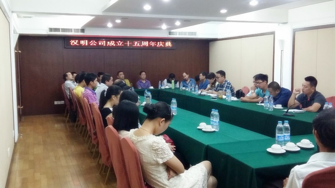 2015年9月3日,武汉市汉明工程设备有限公司(以下简称汉明公司)在蔡甸区风景秀丽的职工疗养院举办了公司成立十五周年的庆典活动。会上,杨汉齐总经理与员工们互相交流,一起分享公司成立十五周年的喜悦。